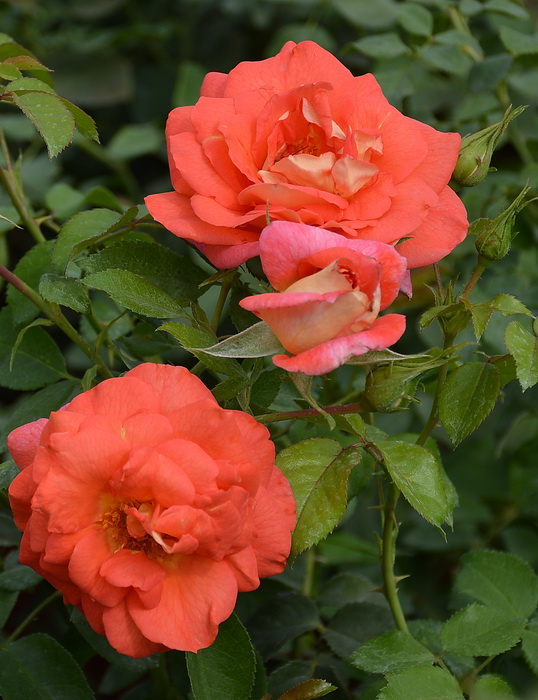 Оригинатор: Kordes. Оранжево-желтые бутоны раскрываются в чашевидные, махровые, 50-60 лепестков, цветки, в коралловых и розовых тонах со сливочно-желтой изнанкой, диаметр цветка 6-8 см. В полном роспуске может показать серединку. Листья крупные, глянцевые. Высота куста до 0,8 м. Очень устойчива к заболеваниям.