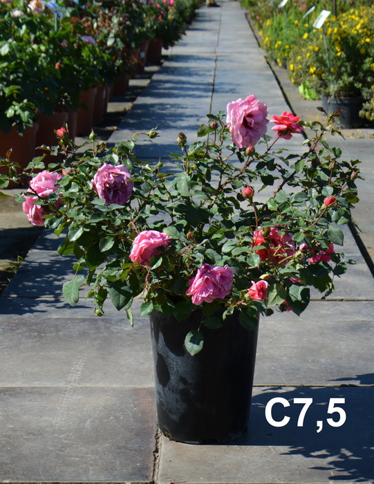 Harkness, 2009г. Цветки махровые, 6-8 см в диаметре, лепестки светло-розовые. Вначале цветки ничем не отличаются от традиционных роз. Позднее, лепестки отгибаются и становится видно темно-пурпурное пятно у основания. Эта экзотическая роза не похожа ни на одну другую. Куст до 0,8 м высотой и около 0,6 м в ширину.