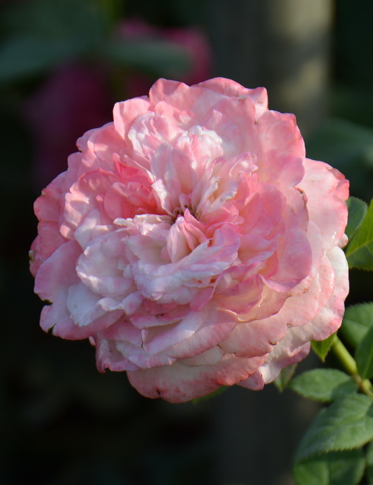 Оригинатор: Guillot. Бутоны белые с красноватым напылением. Цветки диаметром 6-8 см, бело-розовые с красными краями, махровые, квартированные. Листья блестящие, устойчивые к заболеваниям. Кусты густые, высотой 0,8-1 м. Цветение повторное.