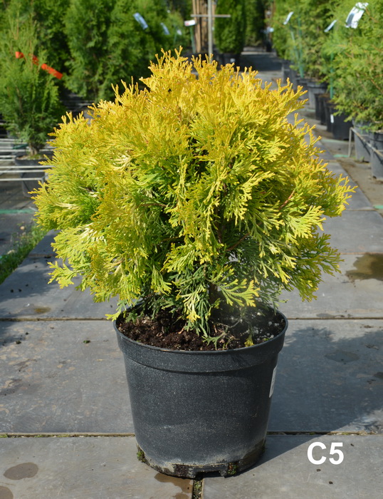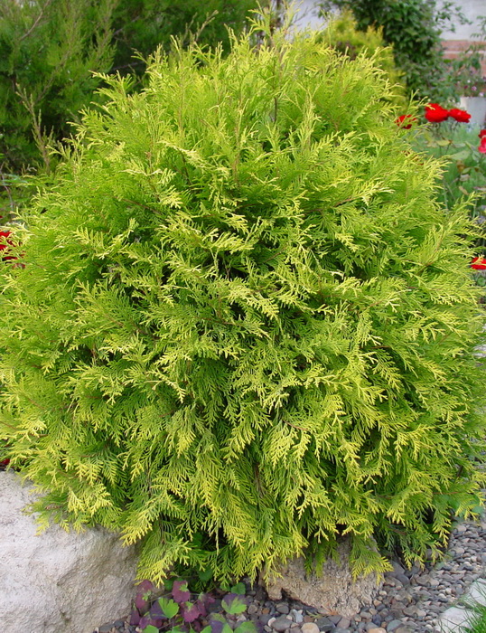 Компактный сорт с плотной сферической кроной. Высота и диаметр взрослого растения до 0,8-1 м. Растет медленно. Хвоя золотисто-зеленого цвета, осенью становится светло-оранжевой. Первые два-три года после посадки рекомендуется притенение от зимних и весенних солнечных ожогов. Хорошо растет на свежих, увлажненных, плодородных суглинках, без застоя воды.