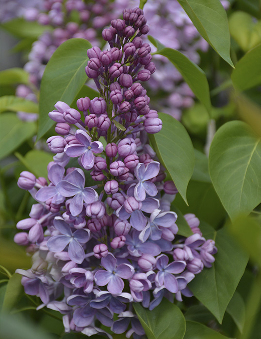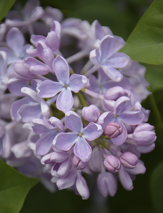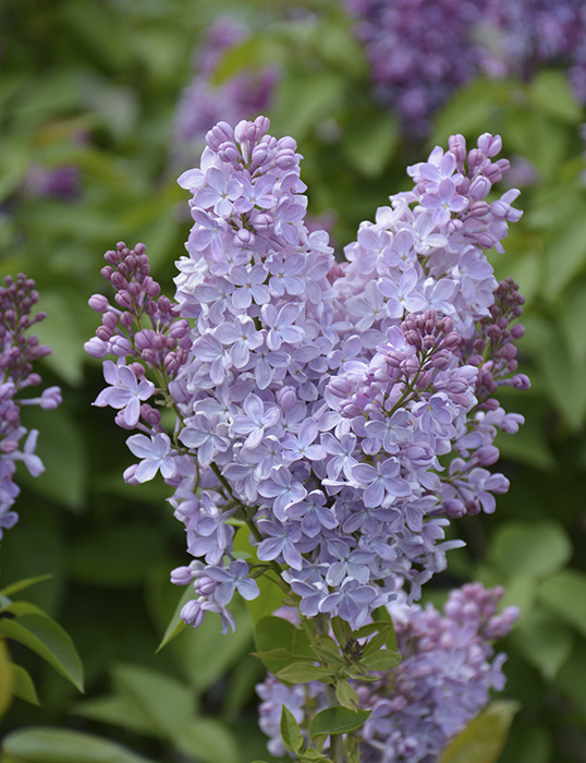 Бутоны бледно-лиловые, зеленоватые. Цветки простые, крупные, до 3 см. С внутренней стороны лепестки голубовато-лиловые, в период массового цветения голубые, при этом хорошо видны желтые тычинки в центре венчика, белые стрелки и светлые кончики лепестков. Соцветие длинной 21-24 см, состоит из двух крупных разреженных кистей. Высота куста 2-3 м.