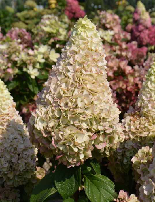 Куст высотой и диаметром 1,2-1,5 м. Стерильные цветки вначале светло-зелёные, затем в основании соцветия приобретают бело-кремовую окраску. Плодущие цветки почти незаметные. Соцветия красивые, плотные, конусовидные, длиннее, чем у сорта «Limelight», в них могут присутствовать листья. Цветение в июле-сентябре. Место солнечное или полутенистое. Почва влажная, дренированная. Зона 3 (до -34°С).