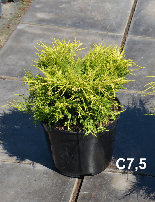Кустарник. Крона раскидистая. Высота 0,8 -1 м, ширина кроны 1,8 - 2,5 м. Молодая хвоя ярко-жёлтая, позднее желто-зелёная. В глубокой тени становится зеленой. Местоположение: солнце, полутень. Почва суглинистая, супесчаная, известковая, увлажненная.