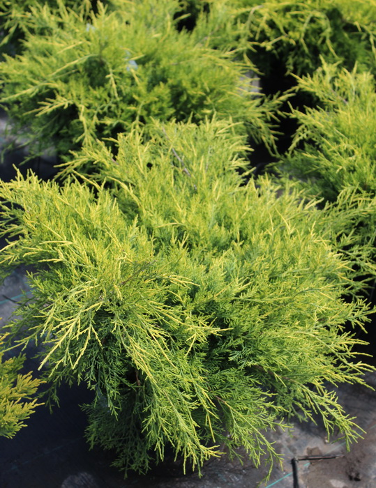 Густой кустарник с округлой формой кроны. Высота 1-1,5 м, ширина 2-2,5 м. Растет медленно. Хвоя чешуйчатая, золотисто-желтая, зимой золотисто-бронзовая. Местоположение: солнце, полутень. Почва песчаная, известковая, увлажненная. Плохо переносит сухость воздуха. Регулярная весенняя обрезка молодых побегов, способствует формированию более плотной кроны.