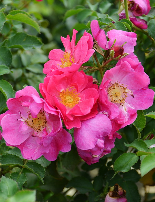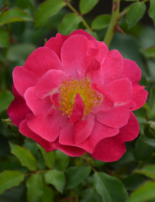 ADR. Оригинатор: Kordes. Роза с полумахровыми цветками диаметром 4-6 см кармино-розового цвета, с жёлтыми тычинками. Аромат мягкий. Цветение почти непрерывное, весь сезон. Листва среднего размера, тёмно-зелёная, глянцевая.