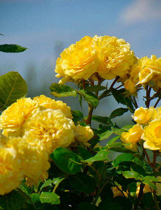 Цветы нежно-желтые 8-10 см в диаметре, густомахровые с насыщенным цитрусовым ароматом. На побегах одиночные или в небольших соцветиях. Цветение волнами в течение сезона. Листва ярко-зеленая, полуглянцевая. Куст вертикальный, густой, высотой 0,8-1 м, шириной около 1 м. ADR