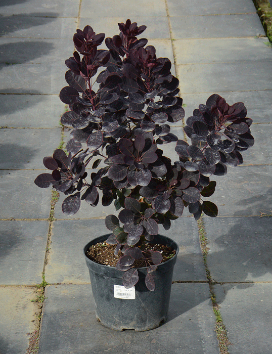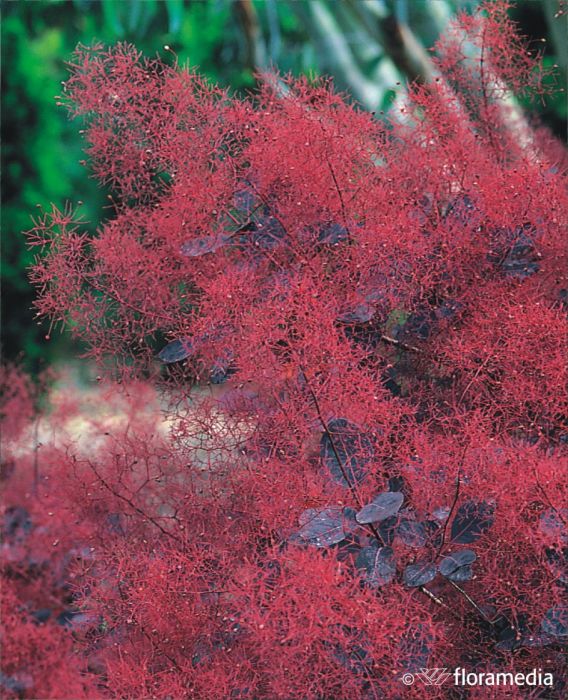 Кустарник или деревце. Высота и диаметр кроны 2 - 3 м. Крона округлая. Листья округлые, пурпурные, позднее с фиолетовым оттенком. Цветки мелкие, желто-красные, собраны в верхушечные метельчатые соцветия. Местоположение: Солнце. Защищенные от ветра места. Почва известковая. Не любит тяжелых почв и избыток влаги.