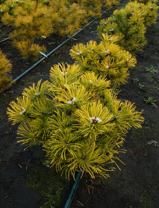 Новинка! Кустарниковая форма. Крона широкая, плотная, побеги растут вверх. Высота 0,8 - 1,2 м. Хвоя зеленая, зимой - лимонно- желтая. Ежегодный прирост 8 - 12 см. Шишки 3 - 4 см серо-коричневые. Сорт был получен в Зюндерте в Нидерландах (A.Van Nijnatten). Зимостойка, морозостойка. Светолюбива. К почвам малотребовательна. Выдерживает засуху и отсутствие полива.
