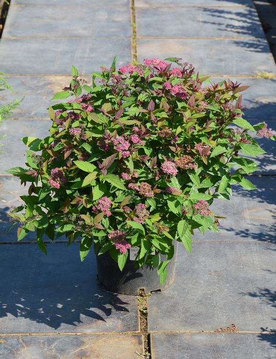 .Декоративный плотный кустарник округлой формы, высотой и диаметром 60-80 см. Цветки темно-малиново-красные, собраны в щитковидные соцветия. Цветёт в июне. Листья при роспуске весной очень эффектные, бордово-фиолетовые, позднее зелёные. Место солнечное или полутенистое. Зона 4 (до -29°С).