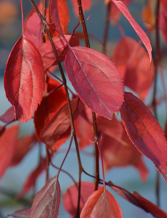 Небольшое деревце. Высота и диаметр кроны 3 м. В штамбовой форме высота зависит от высоты прививки. Крона широкая, плакучая. Цветки темно-красно-пурпурные. Цветение обильное в мае. Плоды темно-красные, мелкие. Листья темно-зеленые с красноватым тоном. Местоположение: Солнце. Почва: свежая, плодородная, суглинистая.