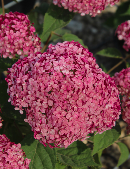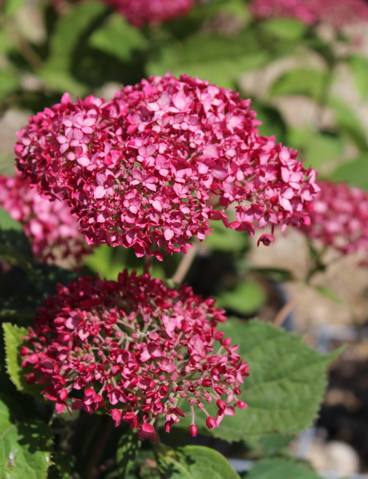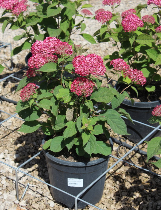Декоративный кустарник высотой 0,6-0,9 м, шириной до 1,2 м. Бутоны тёмно-красные, внешняя сторона лепестков красно-розового цвета, внутренняя – сначала с бордовым оттенком, со временем переходит в розово-серебристый. Цветёт на побегах текущего года с июня до заморозков. Листва тёмно-зелёная.