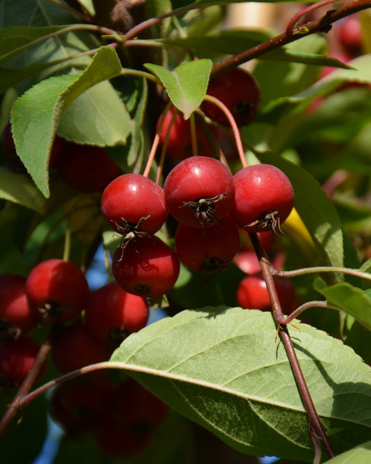 Крупный кустарник или небольшое дерево, овальной формы, высотой 4-5 м, шириной 3-5 м. Листья эллиптические, плотные, зеленые. Бутоны розовые, цветки до 3 см. в диаметре, белые, простые. Ближе к осени появляются миниатюрные яблочки размером с вишню, от светло-красных до ярко-красных. Местоположение: солнце, полутень. Почва: свежие, подкисленная, хорошо дренированные.
