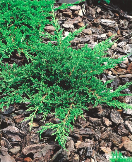 Подушковидный можжевельник высотой 0,5м, диаметром до 2 м. Хвоя- сизо-зеленая. Стелющийся кустарник с приподнимающимися ветвями, покрытыми серой, отслаивающейся корой. Побеги тонкие, четырехгранные. Хвоя острая, в основном игловидная, отстоящая от побегов, до 8 мм длиной, на концах побегов и при хорошем освещении — чешуевидная, прижатая к побегам.
