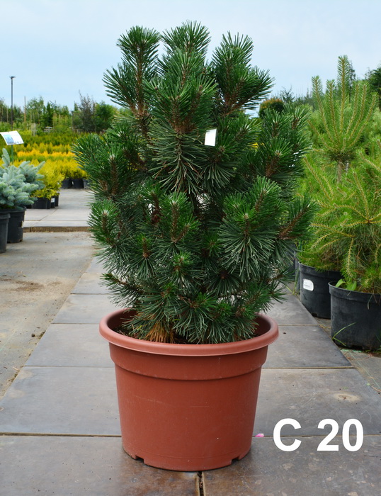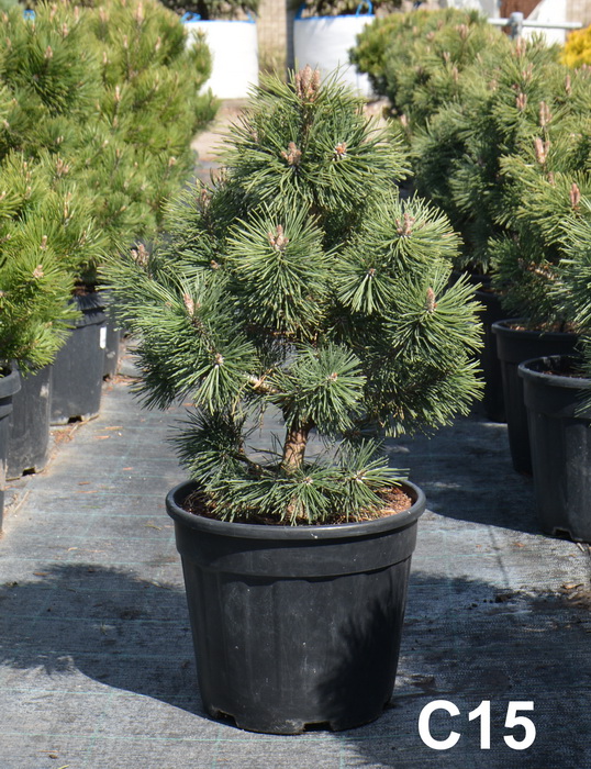 Карликовая форма. Высота 2-2,5 м, диаметр кроны 2 м. Крона узкоконическая, плотная. Растет медленно. Кора серовато-бурая, побеги вертикальные, светло-зеленые. Хвоя игольчатая, расположена радиально в пучках по 2 штуки, темно-зеленая. Шишки тёмно-коричневые. Местоположение: Солнце. К почве нетребовательна, лучше растет на свежих, хорошо дренированных суглинках и супесях, может расти на каменистых почвах. Как правильно посадить сосну с комом земли? Видео инструкция от главного агронома питомника "ЁЛЫ-ПАЛЫ" - Перейти на инструкцию...