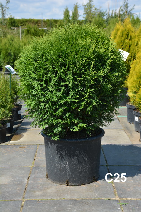 Компактный сорт с густой яйцевидно-овальной, с возрастом шаровидной кроной. Высота взрослого растения 0,6-0,8 м, диаметр 0,4-0,6 м. Хвоя ярко-зеленого цвета в течение вегетационного периода, в зимний период – бронзово-зеленая. Первые 2-3 года после посадки рекомендуется притенение от зимних и весенних солнечных ожогов.  Хорошо растет на свежих, увлажненных, плодородных суглинках, без застоя воды.