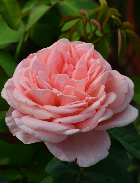 Цветки диаметром 12-14 см, махровые, около 68 лепестков, конфетно-розовые с оранжево-розовым оттенком, одиночные. Аромат умеренный, лимонной вербены с фруктовой ноткой. Цветение повторное, до заморозков. Листва глянцевая, очень устойчивая к заболеваниям. Куст высотой 1-1,2 м и шириной до 0,6 м.
