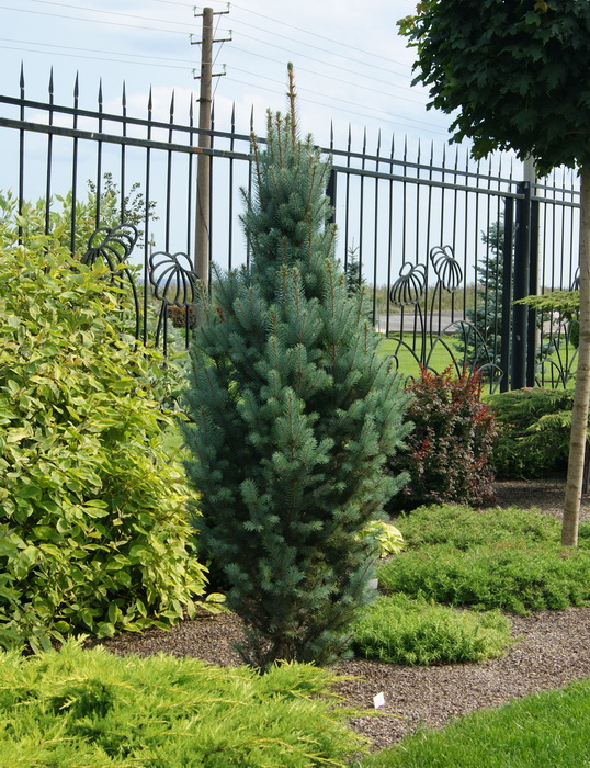 Дерево со стройной, компактной, узкоконической кроной. Высота 5 - 8 м. Ширина кроны 0,8-1,2 м. Побеги вертикально растущие, плотно расположенные, крепкие. Годовой прирост около 15см. Одна из немногочисленных форм с узким габитусом и голубой хвоей. В обрезке не нуждается. Местоположение: Солнце. Почва: плодородная, увлажненная, дренированная, слабокислая. Как правильно посадить ель с комом земли? Видео инструкция от главного агронома питомника "ЁЛЫ-ПАЛЫ" - Перейти на инструкцию...