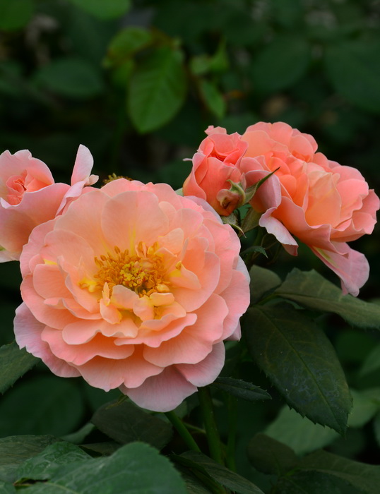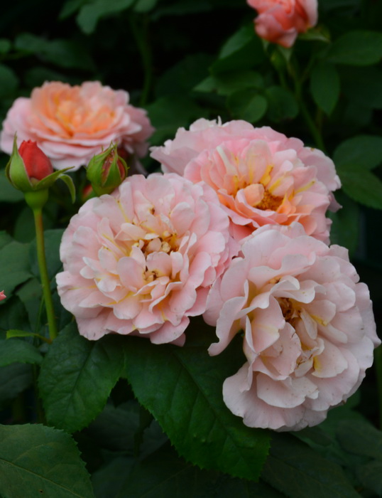 Meilland Франция, 1996г. Цветки красивой и необычной формы, с волнистыми лепестками. Цветки появляются в кистях по 5-15 шт, листва крупная, блестящие. Растение образует ветвистый куст, цветет практически непрерывно.
