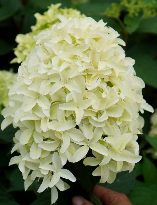 Особенностью сорта являются крупные цветки, по форме напоминающие гиацинты. Конусовидные соцветия достигают длины более 30 см, ширины более 15 см. Сразу после распускания цветы имеют чистый белый или с небольшой зеленцой оттенок, постепенно набирающий розоватый тон. Побеги вертикальные, крепкие, быстро растут и отлично держат большие соцветия. Высота куста до 1,2 м, ширина 0,7 м. Период цветения с июля до конца сентября. Предпочитает солнечное или полутенистое размещение, плодородную влажную и хорошо дренированную почву.