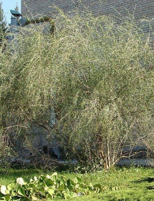 Кустарник с округлой, густой кроной, с многочисленными хрупкими побегами красно-коричневого цвета. Высота и диаметр 1,5-2 м. Листья ланцетные, серебристо-серые. Неприхотлив, хорошо растёт на умеренно сухих и влажных почвах, от среднекислых до совершенно щелочных. Переносит и морозы, и жару. Растёт и на солнце, и в тени. Рекомендуется формирующая стрижка в период вегетации.