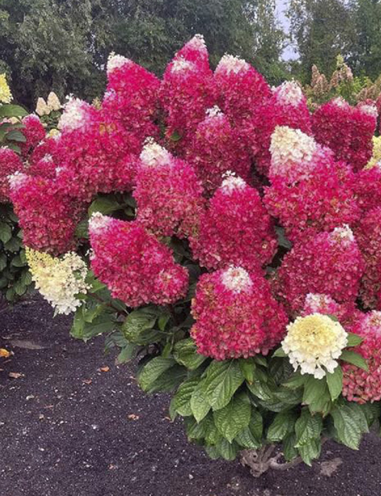 Второе название - Red Velvet. Сорт выведен селекционером Алексом Шумейкером (Alex Schoemaker) и представлен в 2022 году. Пышный веерообразный куст с мощными побегами и крупной темно-зеленой листвой. Цветет обильно с июля до октября, около 100 дней, украшая сад крупными конусовидными метелками.