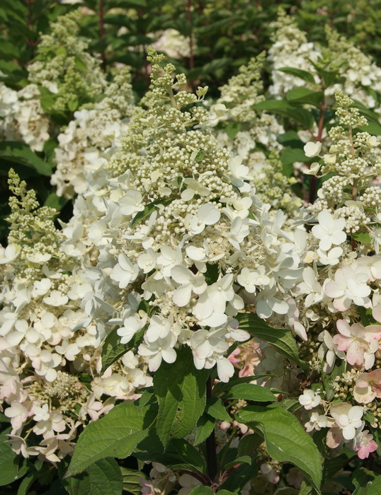 Кустарник. Высота 1,5 м, ширина 2 м. Крона густая, широкоокруглая. Побеги прямые, прочные. Период цветения июль-сентябрь. Цветки в крупных конусовидных крупных соцветиях на побегах текущего года при распускании белые, быстро становятся ярко-розовыми. Сорт выведен в Бельгии. Местоположение: солнце, полутень. Почва влажная, плодородная, кислая.