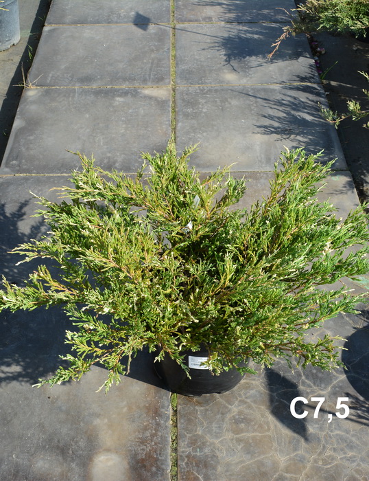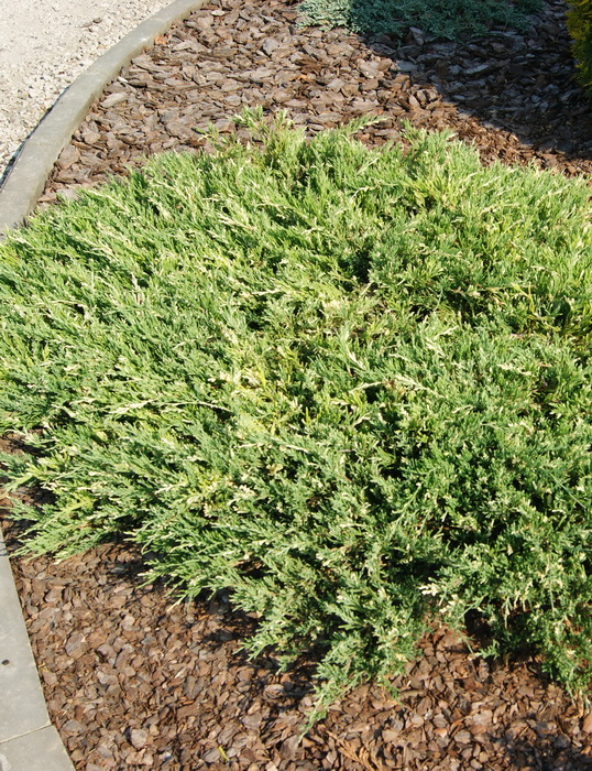 Кустарник. Крона равномерная, распростерто-округлая, плотная. Высота 0,4 м, ширина 2 м. Хвоя игольчатая, темно-зеленая, с кремовыми многочисленными (до 50% общей окраски) вкраплениями. Оригинальная пестролистная форма. Местоположение: солнце, полутень. Почва: свежая, хорошо дренированная.