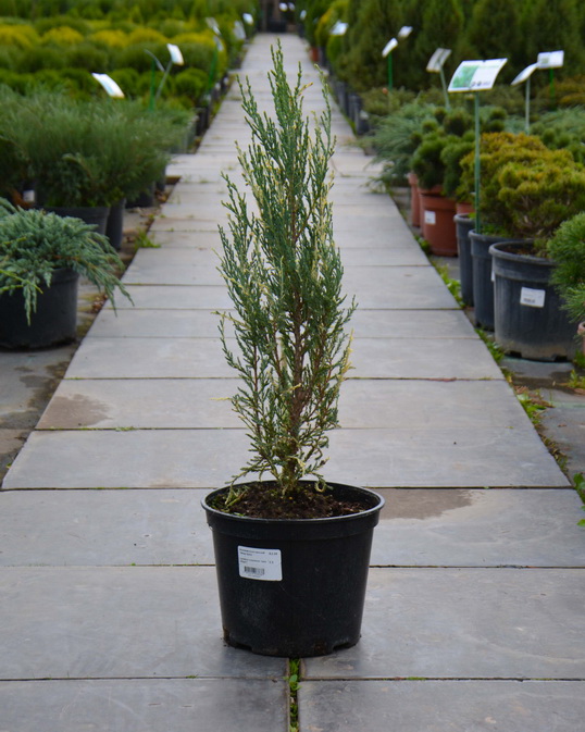 Карликовый кустарник с симметричной, округлой, густой кроной. Высота 0,25 - 0,4 м, диаметр кроны 1,2 - 1,5 м. Растет достаточно медленно. Хвоя яркая, золотисто-желтая, осенью приобретает красноватый оттенок, не колючая. За что и получил своё название `Светящийся желтый`. Местоположение: солнце. Почва: супесчаная, суглинистая, умеренно влажная.