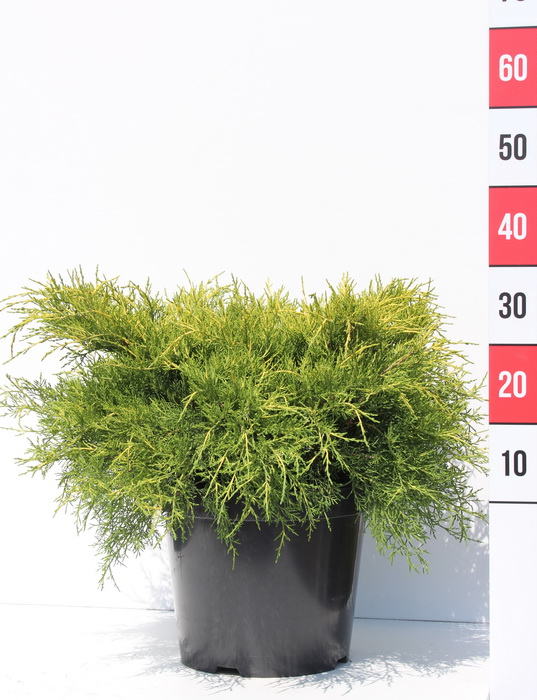Густой кустарник с округлой формой кроны. Высота 1-1,5 м, ширина 2-2,5 м. Растет медленно. Хвоя чешуйчатая, золотисто-желтая, зимой золотисто-бронзовая. Местоположение: солнце, полутень. Почва песчаная, известковая, увлажненная. Плохо переносит сухость воздуха. Регулярная весенняя обрезка молодых побегов, способствует формированию более плотной кроны.