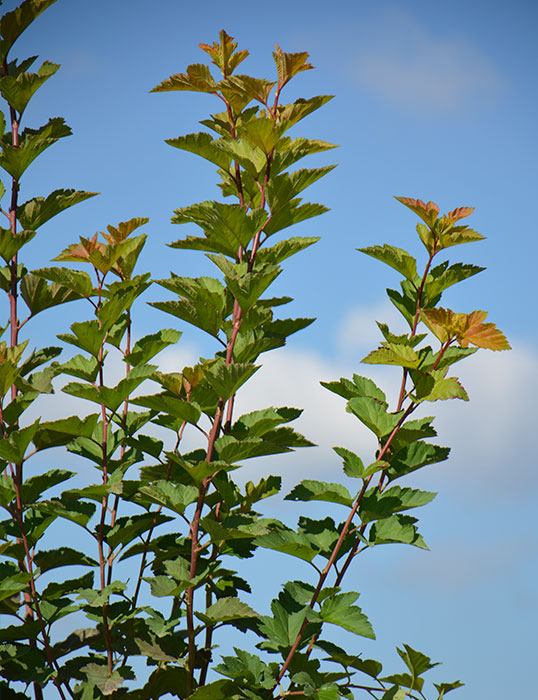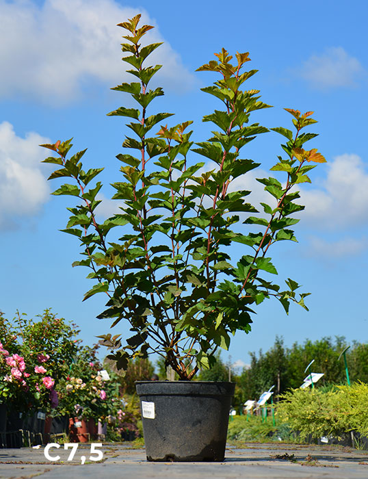 Новинка с потрясающей окраской листвы, настоящий волшебный шар! Компактный кустарник, с шаровидной кроной, высотой до 1,2-1,5 м. В течении сезона окраска листьев меняется: весной — интенсивно- оранжевые, летом — золотисто-желтые, осенью —темно- красные. Цветки мелкие в щитковидных соцветиях, беловато-розовые. Плоды по мере созревания меняют окраску от светло-зеленой до красноватой. Яркий, эффектный сорт. Крона густая. Листья в двое меньшего размера, чем у `Диаболо`. Может выращиваться в контейнерах. Рекомендуется для красочных композиций.