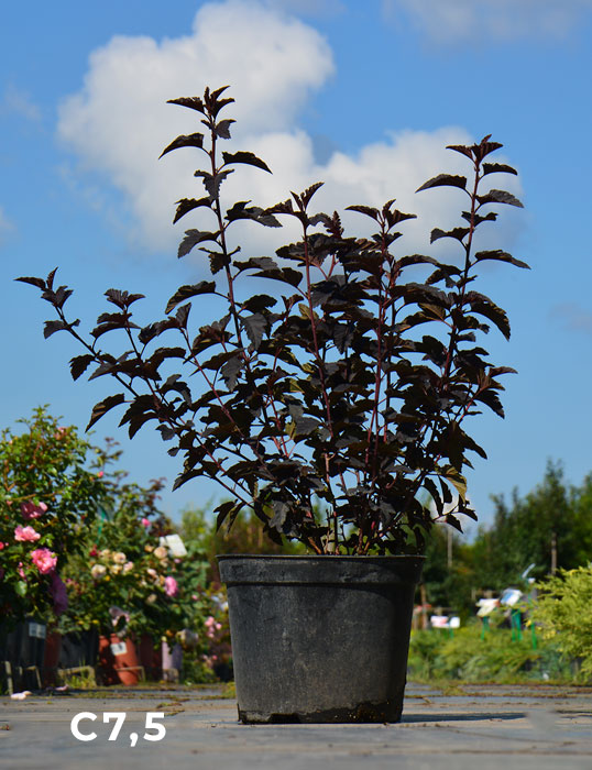 Кустарник. Высота 3 м. Крона густая, полушаровидная. Растет быстро. Листья 3-лопастные, темно-пурпурные. В тени зеленеют. Осенью - бронзовые. Период цветения июнь-июль. Цветки бело-розовые, в щитковидных соцветиях. Плоды округлые, бурые. Местоположение: солнце. К почве нетребователен. Плохо переносит избыточное увлажнение. Хорошо реагирует на стрижку. Практически не повреждается вредителями.