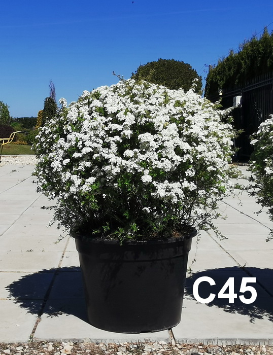 Кустарник. В свободнорастущей форме высота 1,5 - 2 м. Побеги дугообразные, поникающие. Листья серо-зеленые. Цветки белые, собраны в рыхлые щитки, расположенные по всему побегу. Цветение в мае-июне. Формирующая обрезка проводится сразу после цветения. Местоположение: Солнце. Почва свежая, садовая.