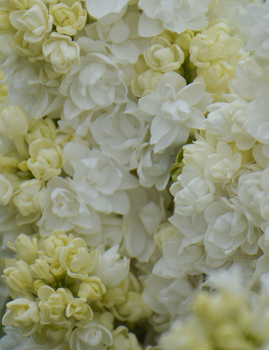 Соцветия плотные, длинной 27-33 см. Бутоны округлые, желтовато-зеленоватые. Цветки густомахровые, крупные, диаметром до 4 см, белые, венчики слегка расставлены. Лепестки лёгкие, на длинных трубочках, с заострёнными загнутыми кончиками. Высота куста 2,5-2,9 м.