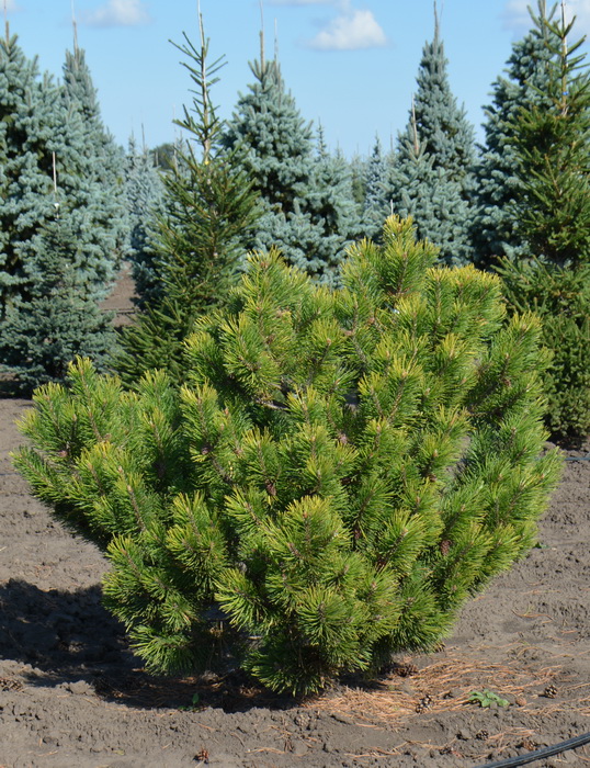 Новинка! Кустарниковая форма. Крона широкая, плотная, побеги растут вверх. Высота 0,8 - 1,2 м. Хвоя зеленая, зимой - лимонно- желтая. Ежегодный прирост 8 - 12 см. Шишки 3 - 4 см серо-коричневые. Сорт был получен в Зюндерте в Нидерландах (A.Van Nijnatten). Зимостойка, морозостойка. Светолюбива. К почвам малотребовательна. Выдерживает засуху и отсутствие полива.
