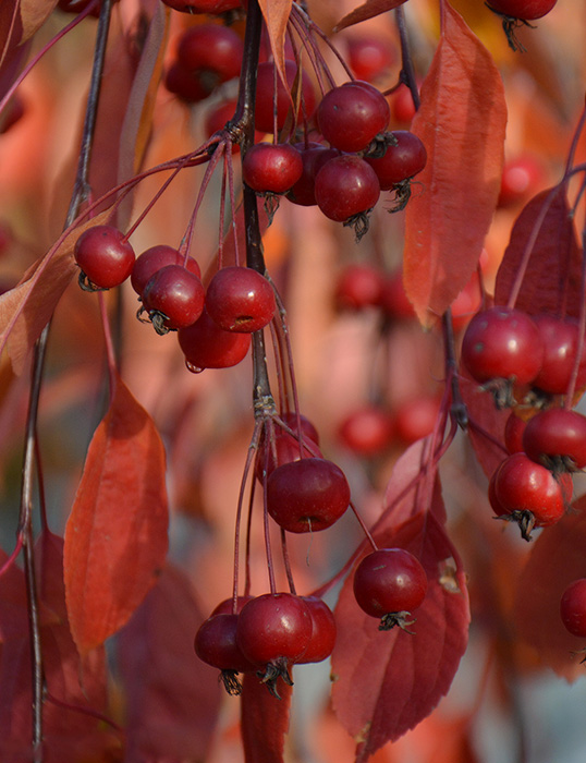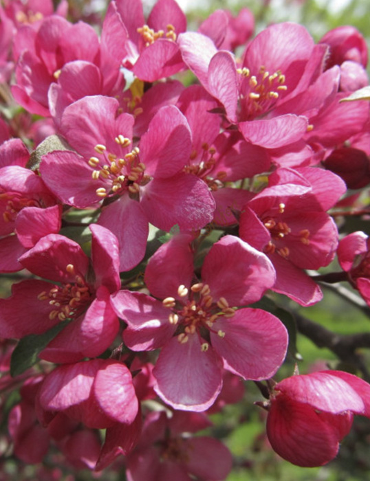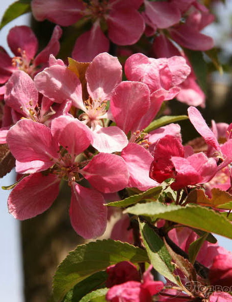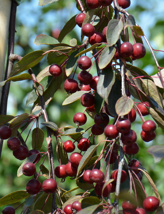 Небольшое деревце. Высота и диаметр кроны 3 м. В штамбовой форме высота зависит от высоты прививки. Крона широкая, плакучая. Цветки темно-красно-пурпурные. Цветение обильное в мае. Плоды темно-красные, мелкие. Листья темно-зеленые с красноватым тоном. Местоположение: Солнце. Почва: свежая, плодородная, суглинистая.