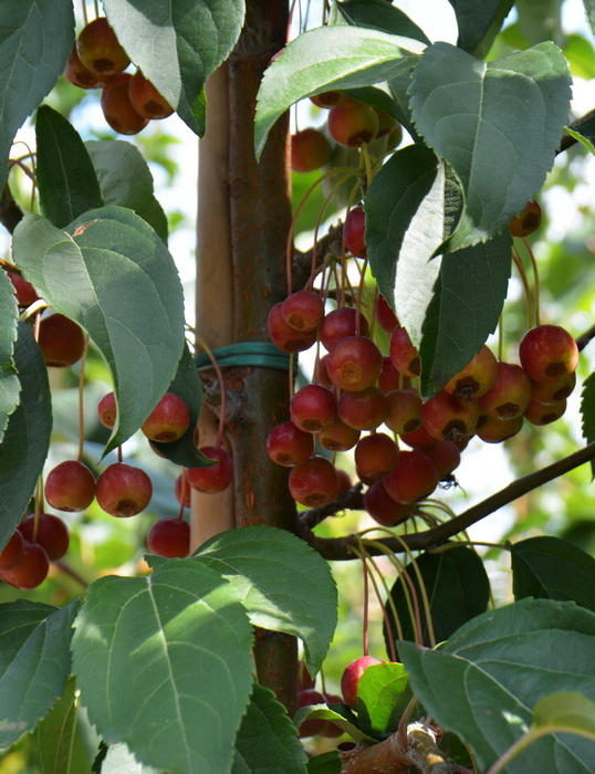 Яблоня ягодная Стрит Парад - крупный кустарник или небольшое деревце 4-6 м высотой, ширина 2-3 м. Бутоны розовые или ярко-розовые, после распускания цветки белые, простые, приятный аромат.